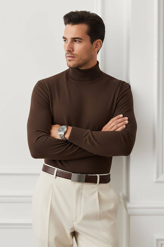 Men's Turtleneck Ribbed Solid Basic Sweater LS2100
