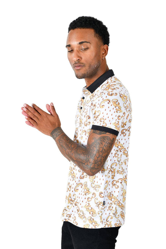 Barabas Men's Golden Floral Short Sleeve Polo Shirt PS111