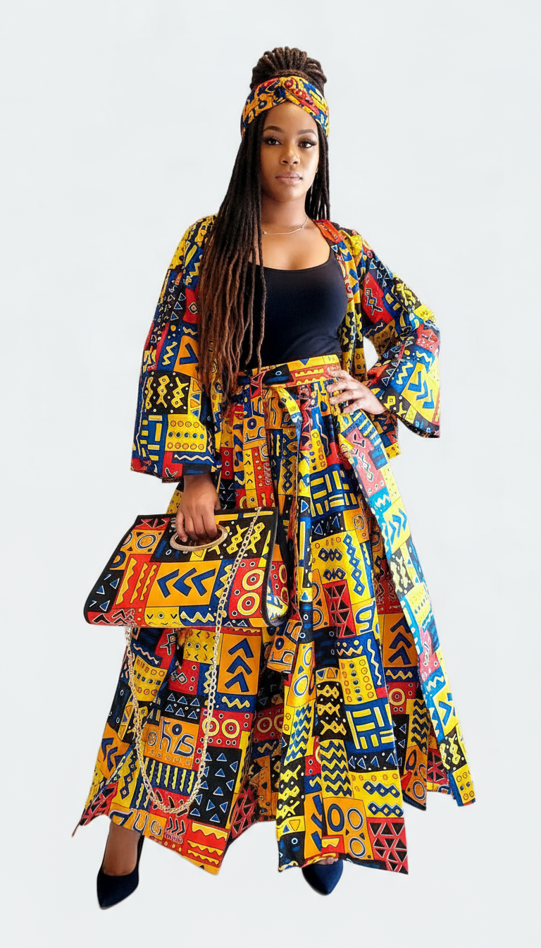 3pcs Set Maxi Skirt Pocketbook wrap Dress D