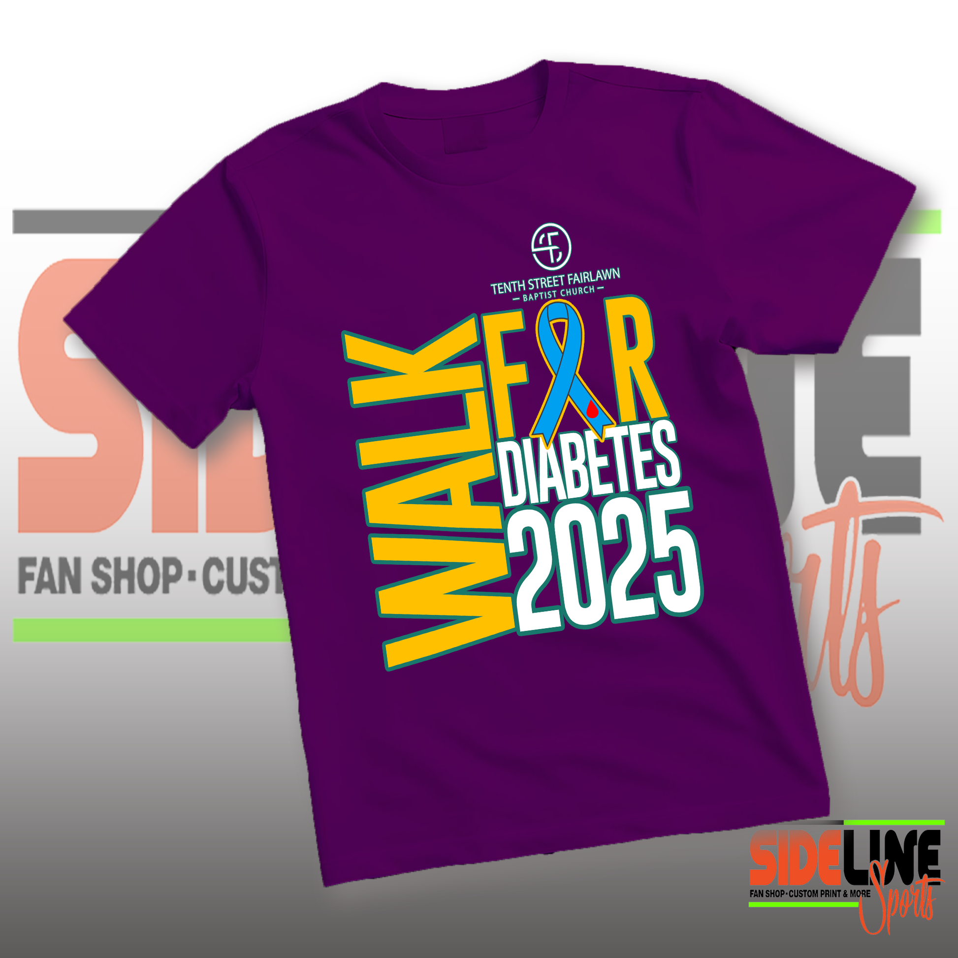Gildan 5.3 oz Pre-Shrunk Cotton Purple tee with custom print Walk for Diabetes